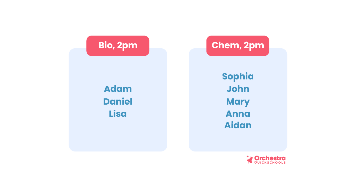 By reviewing class rosters and the daily timetable together, teachers can spot where students could be redistributed more evenly and where small placement changes would immediately reduce overcrowding.